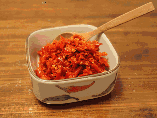 每年辣椒成熟的时节,贵州街巷总会响起木钵与宰刀碰撞的节奏——那是家家户户在制作糟辣椒的信号。选用新鲜二荆条(或搭配本地特色辣椒),搭配脆嫩的仔姜、饱满的蒜瓣,在木盆里细细宰碎,装入土坛密封发酵。全程忌油忌生水,让辣椒在时光里慢慢酝酿出酸、甜、辣、鲜的复合风味。 发酵好的糟辣椒,鲜红如玛瑙,一口下去,香、辣、鲜、酸、嫩、脆层层递进。它是“糟辣脆皮鱼”的灵魂调料,是“怪噜饭”的点睛之笔,拌凉菜、调蘸水时加一勺,瞬间唤醒味蕾。在遵义人的餐桌上,它从不是配角,而是乡愁最直接的味道。
